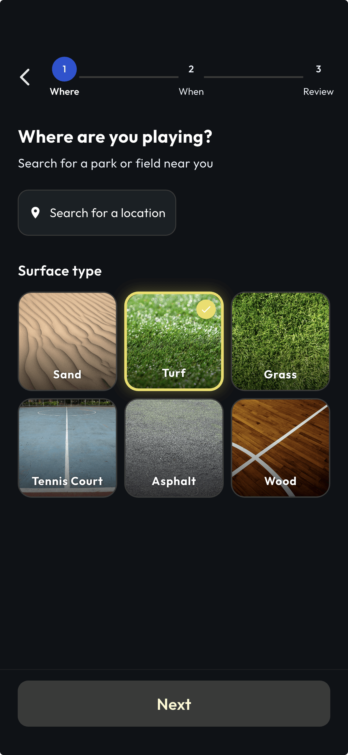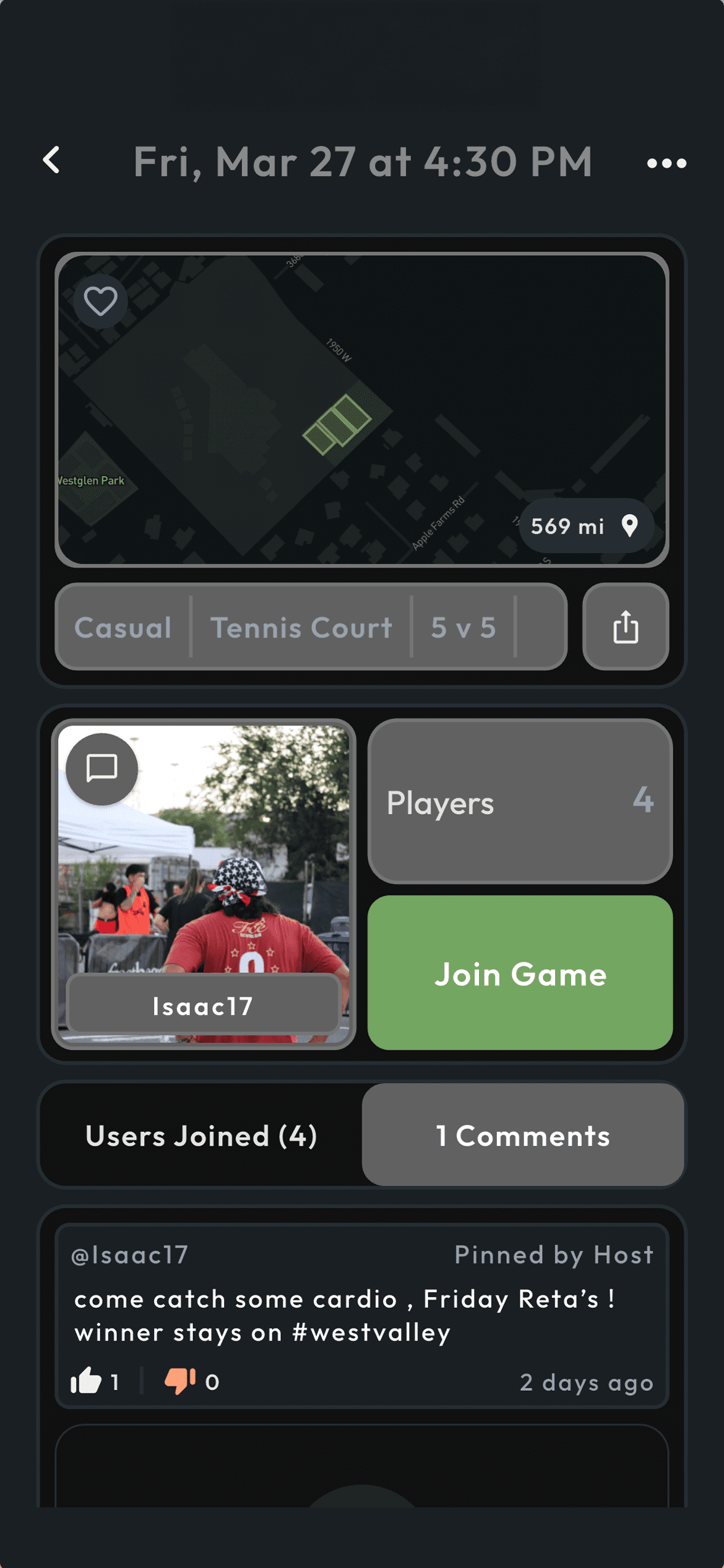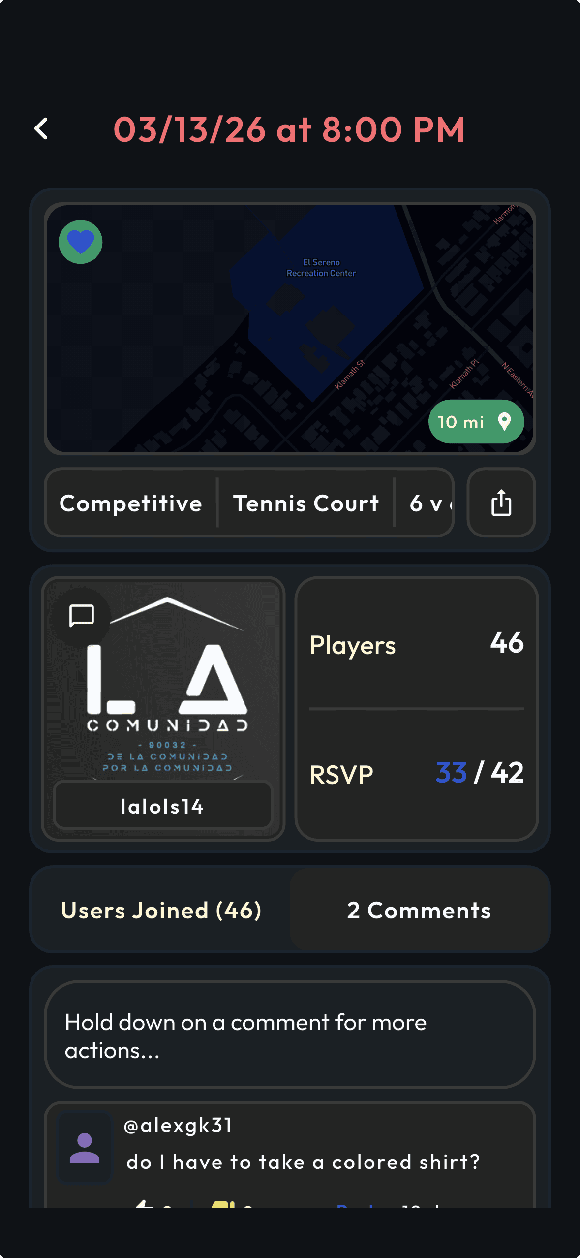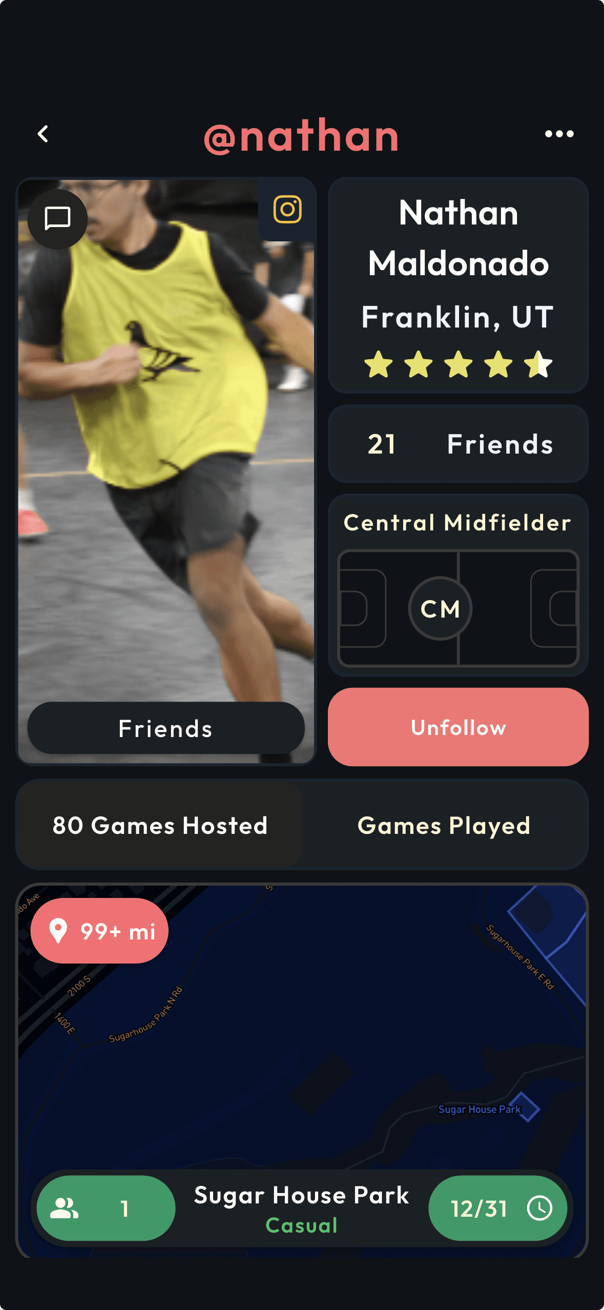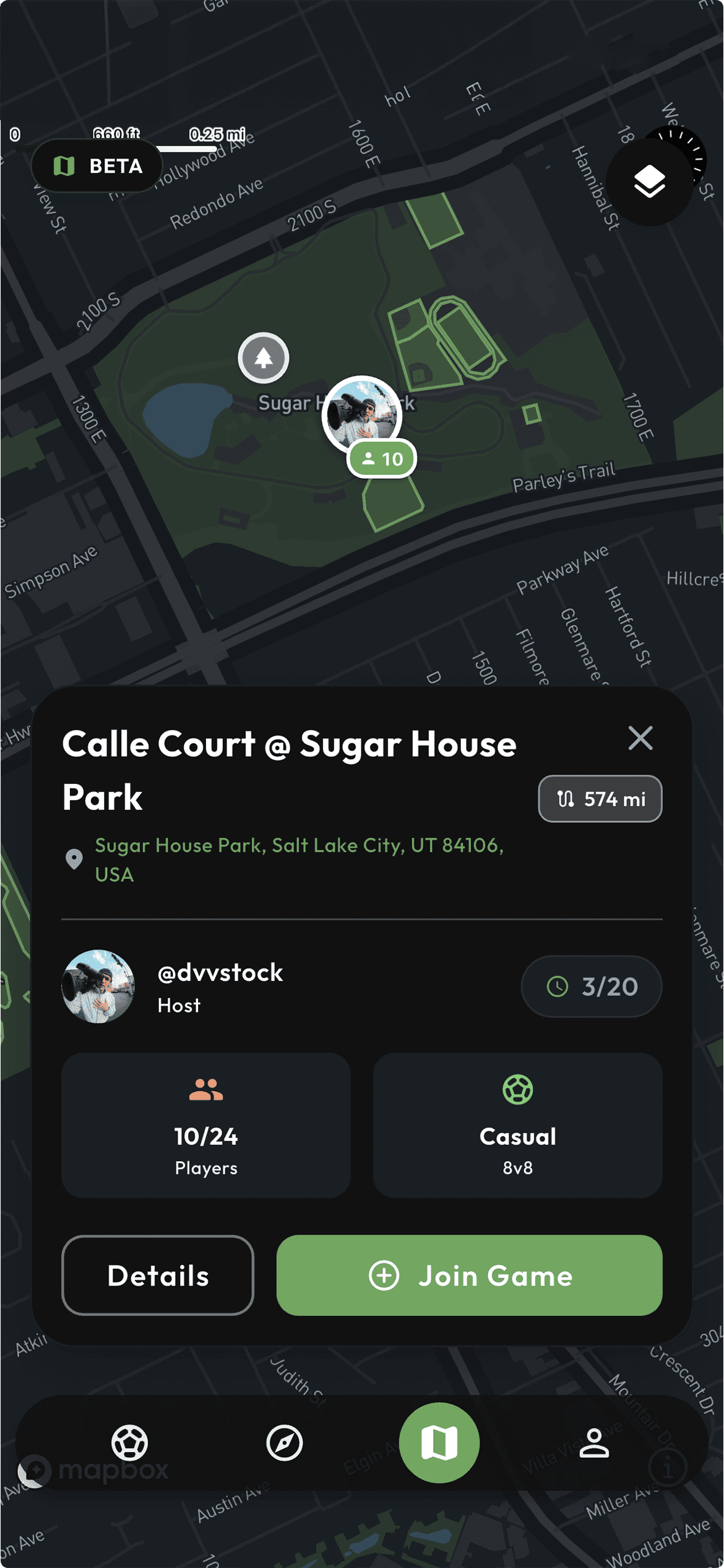 Browse a live map of pickup games near you. Filter by distance, format, and skill level.